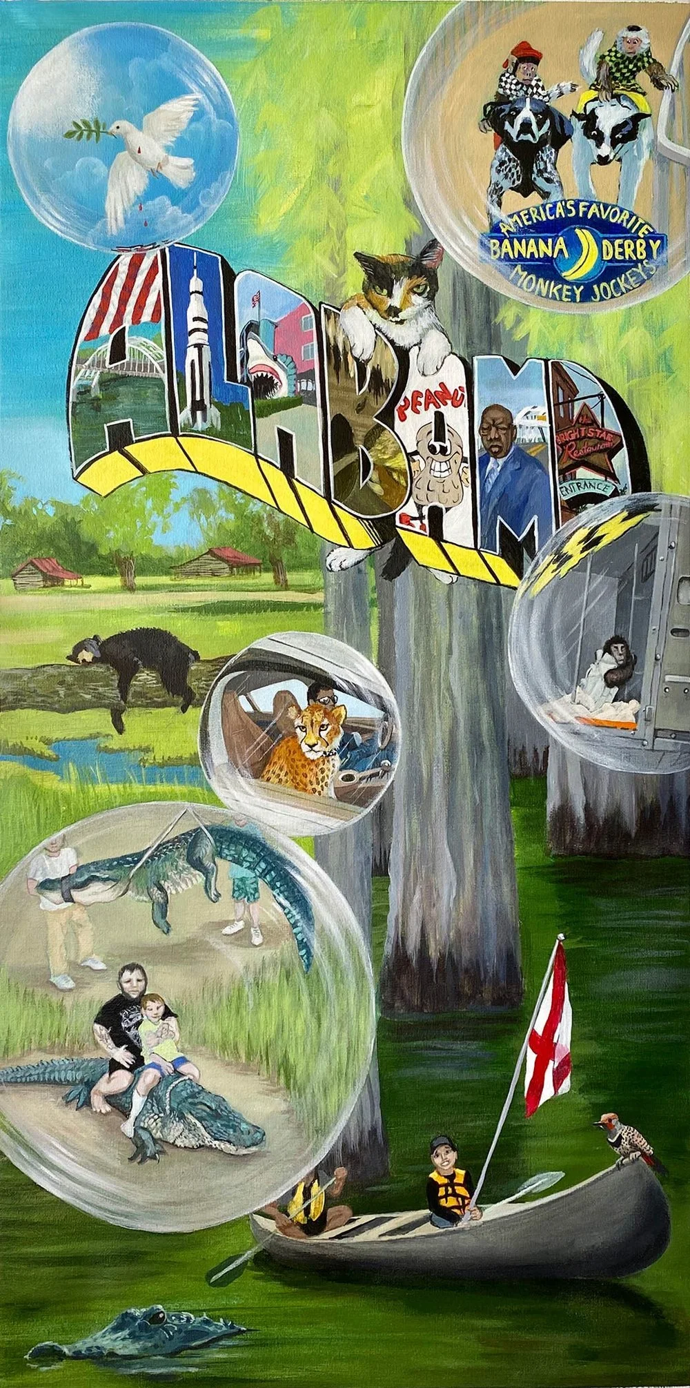 State of the Union – Animals Across America is a compelling, thought-provoking exhibition that examines the contrast between how animals are revered in American symbolism and their realities in society. Through a series of 51 paintings, Jane O’Hara invites viewers to explore each U.S. state’s relationship with animals, both celebrated and overlooked.